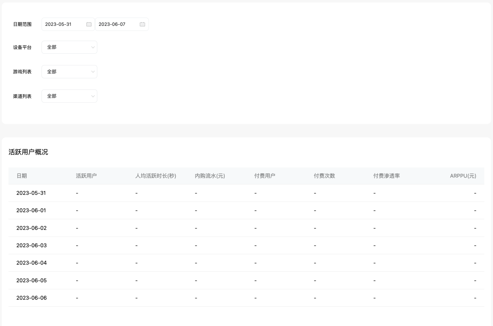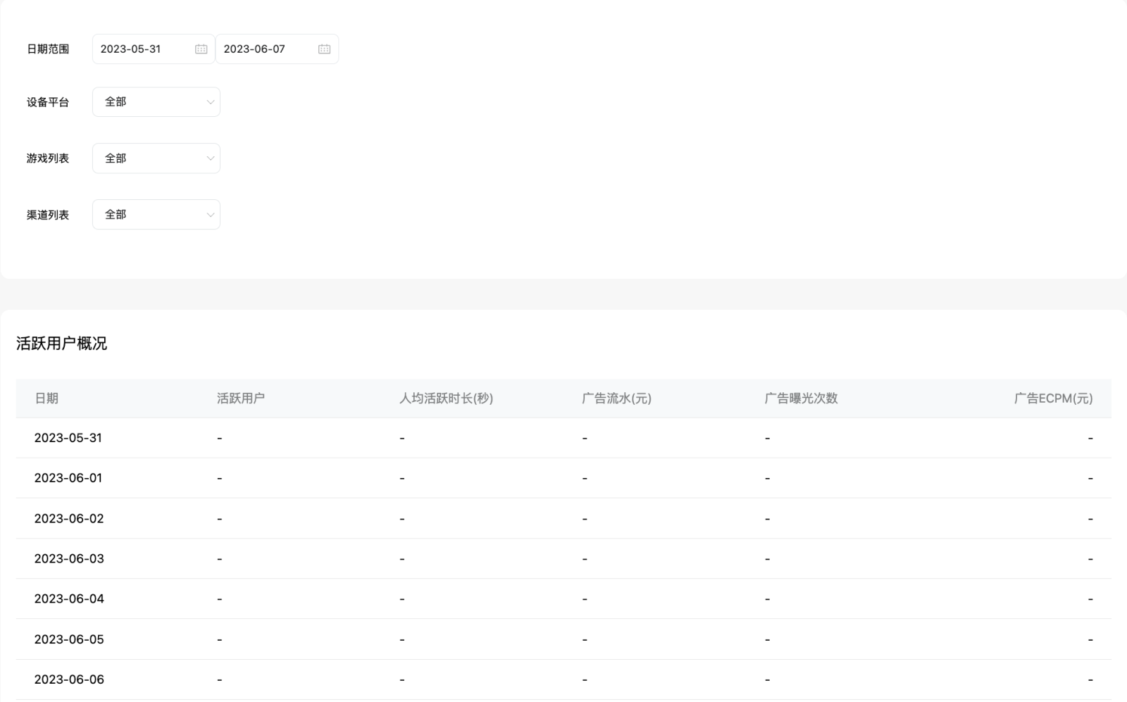 (4) 数据查看: 服务商可前往“一包多发 - 内购数据/广告数据”模块,查看每日的一包多发合作数据(自然量、LTV、留存等更多指标陆续上线中)。