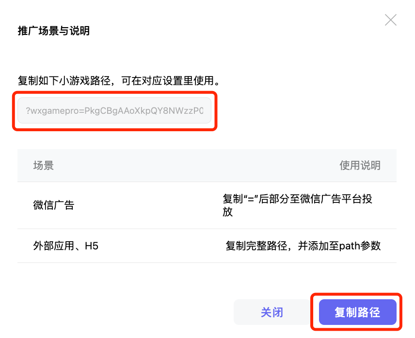 Step3: 使用合作的游戏appid + 渠道参数,可用于广告投放。