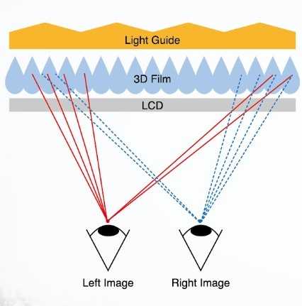 柱状透镜技术也被称为微柱透镜3D技术,使液晶屏的像平面位于透镜的焦平面上,这样在每个柱透镜下面的图像的像素被分成几个子像素,这样透镜就能以不同的方向投影每个子像素。于是双眼从不同的角度观看显示屏,就看到不同的子像素。