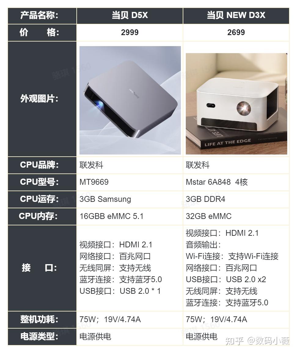 二、当贝D5X投影仪和当贝NEW D3X的处理器的差异