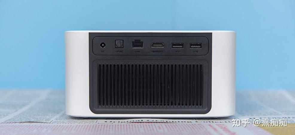 外观设计——小巧灵动: 当贝F5配备了丰富内容源接入方式,所以其机身上也配备了丰富的物理接口,如HDMI2.1接口、HDMI/eARC接口、S/PDIF数字接口、以及2个USB2.0接口、RJ45网线接口和耳机孔等,足以满足用户日常的多样化接驳需求。机身四面是航空铝材质,顶部按键采用防爆玻璃面板有一种流光镜面效果,并且机身顶部抛弃传统的物理按键,改为更美观一体、更有现代科技感的隐藏式触控式按键。