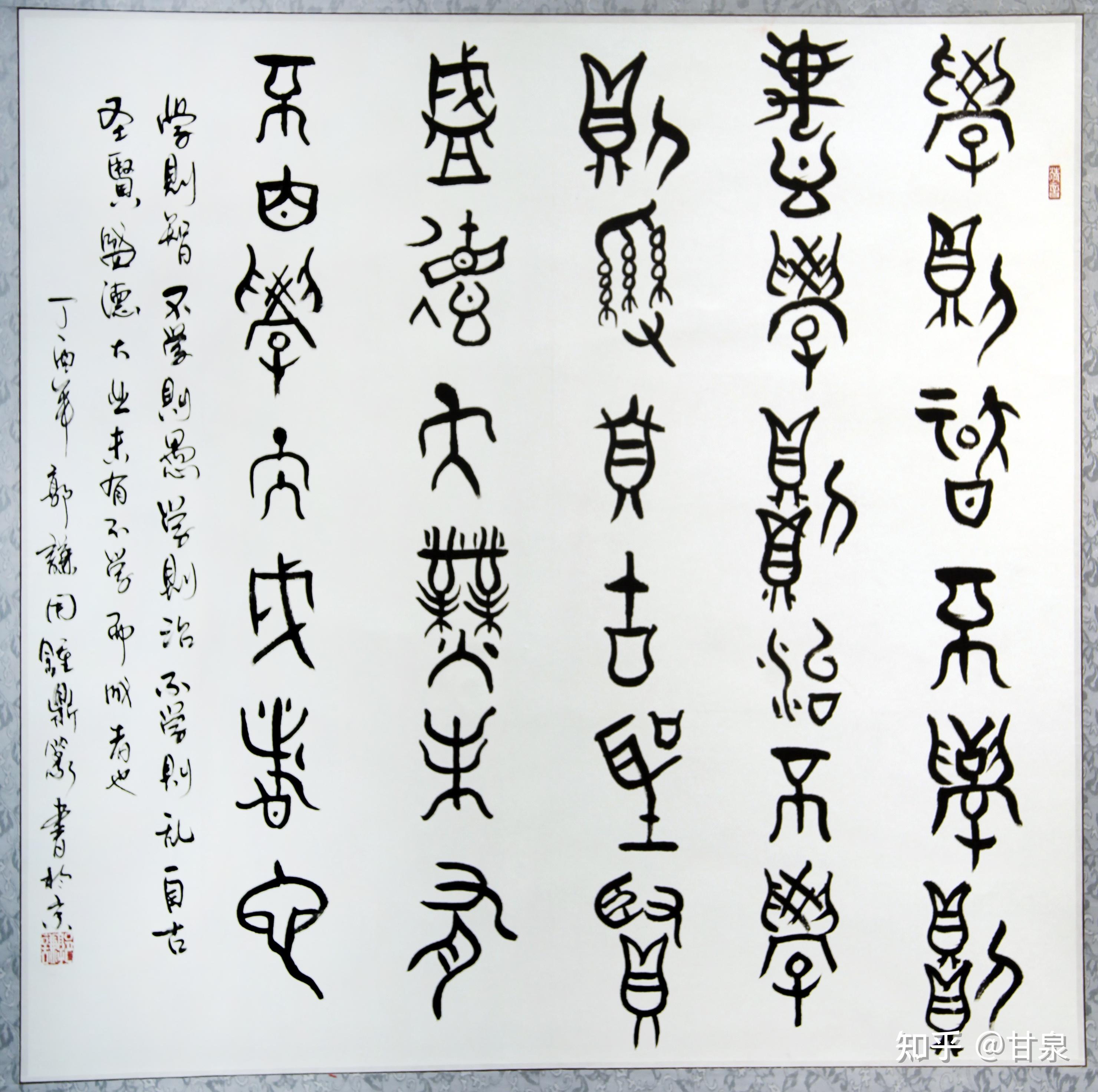随着现代考古工作的发展,甲骨文、汉简、楚简的大量发现,各种字典展示了考古的文字成就,书法家们按此创作出甲骨文书法、汉简书法、楚简书法。后来又发现了中山王篆等。非遗文化的发掘,让东巴文、水书、中国女书等神秘书体走进了我们的视野。在这个和平盛世里,很多书法家不仅继承传统书法之精髓,而且书法的书体在变革、创新,呈现了与时俱进的态势。