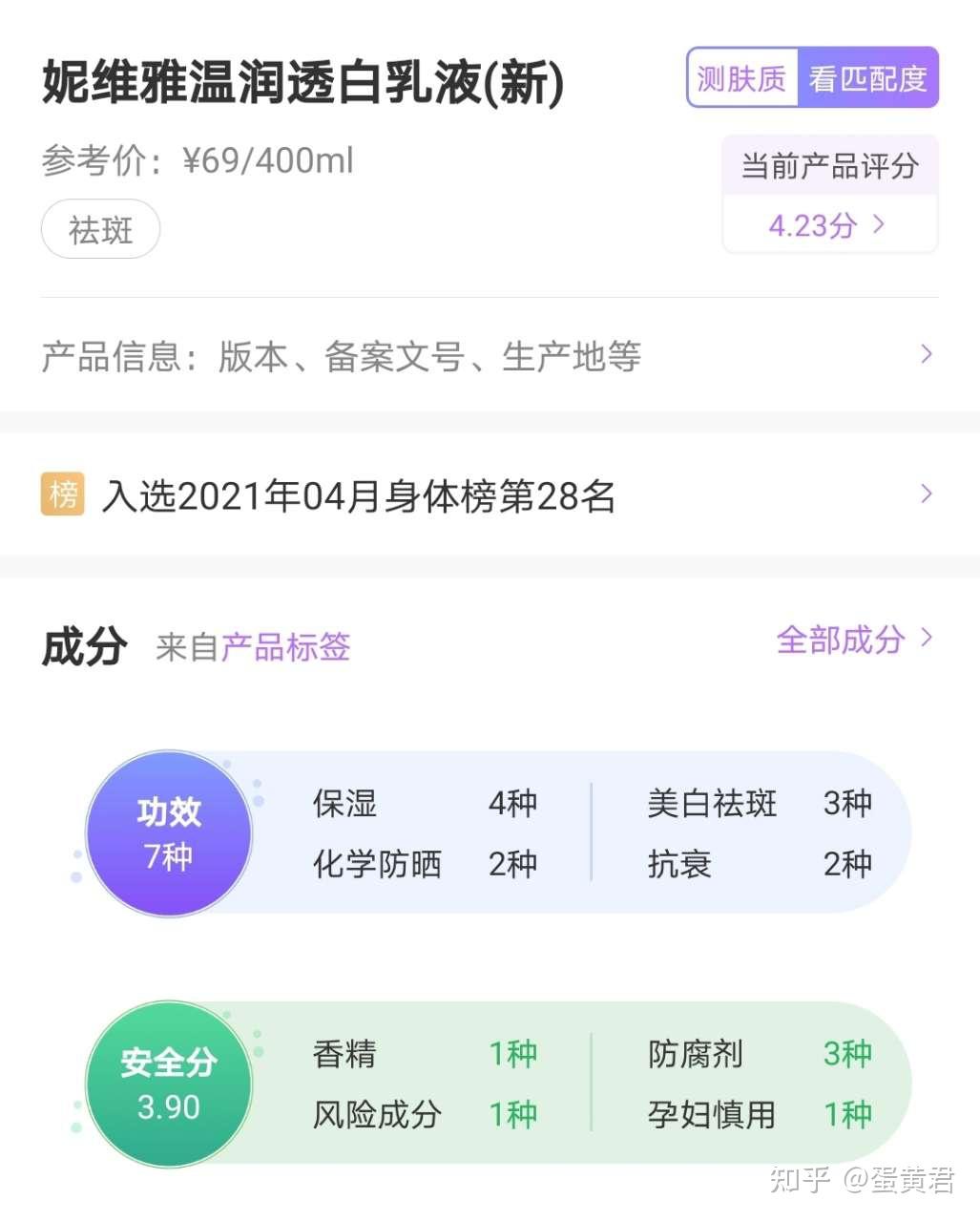 除了烟酰胺,VC也是非常有名的美白成分,妮维雅的这款身体乳从卡姆果中提取了高浓度的VC,光果甘草提取物也有提亮焕肤的作用,加上西印度樱桃果的保湿滋养作用。
