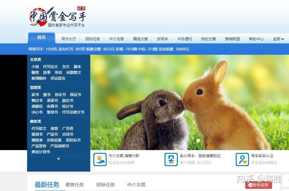 中国赏金写手网 写作任务赚钱,也可以发布招聘写手。