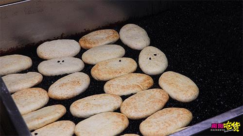石子下铺上盖,底下大火烙石鏊,圆饼在石子中间慢慢膨胀,逐渐变胖起来,多了些圆润。