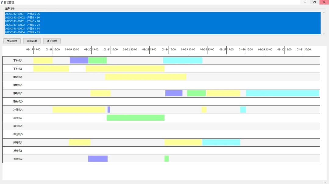 但是此时生成的结果是表格形式的,所以,又花了几轮对话,把排程结果改为了甘特图的样式,至此具有完整功能的第一版软件开发好了。