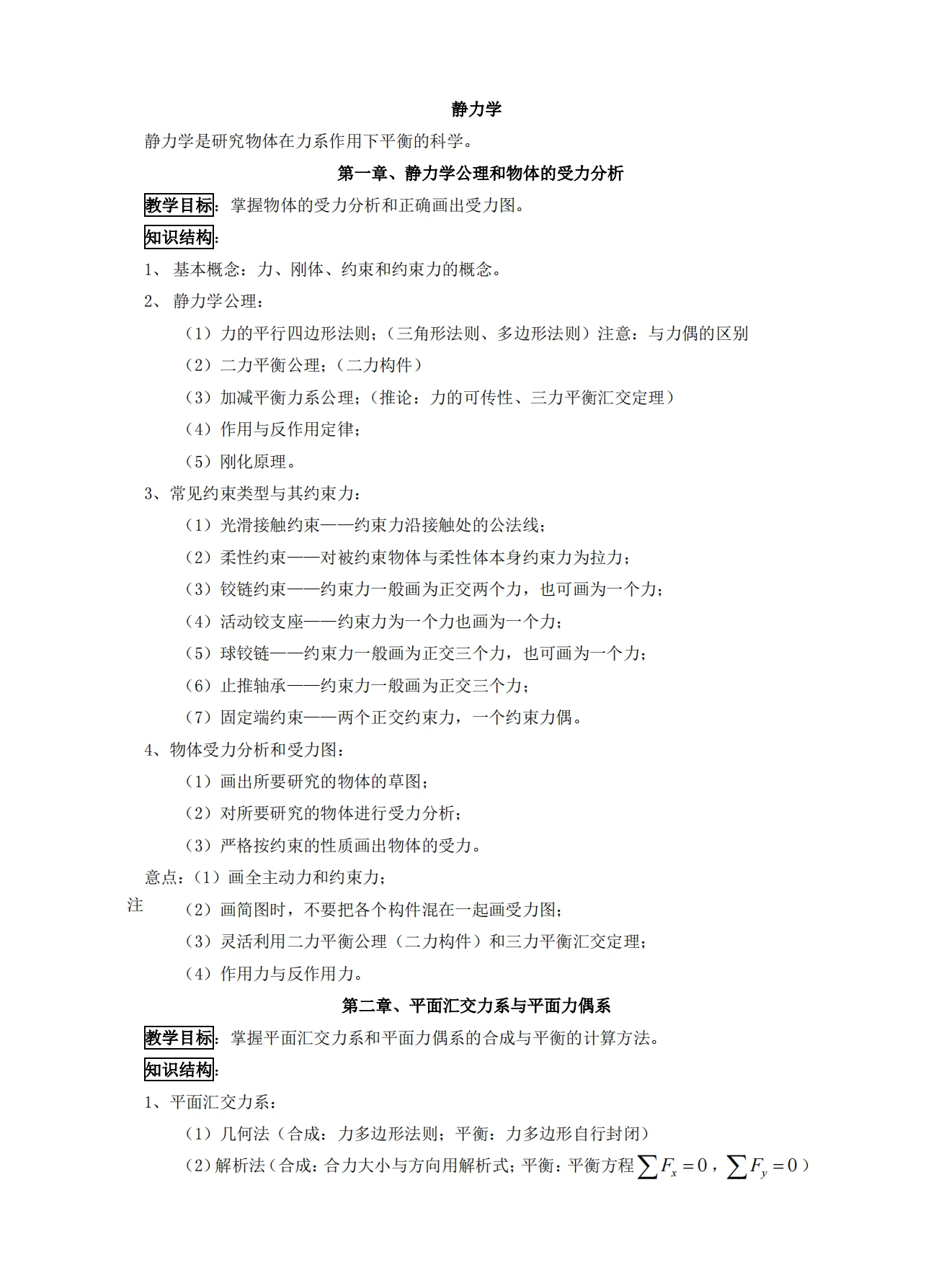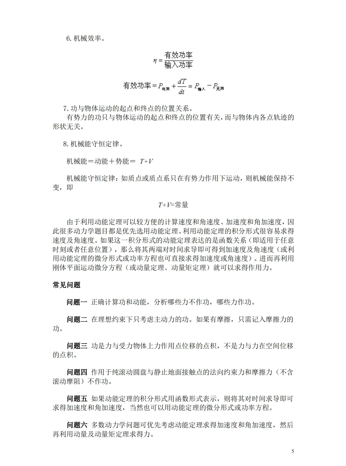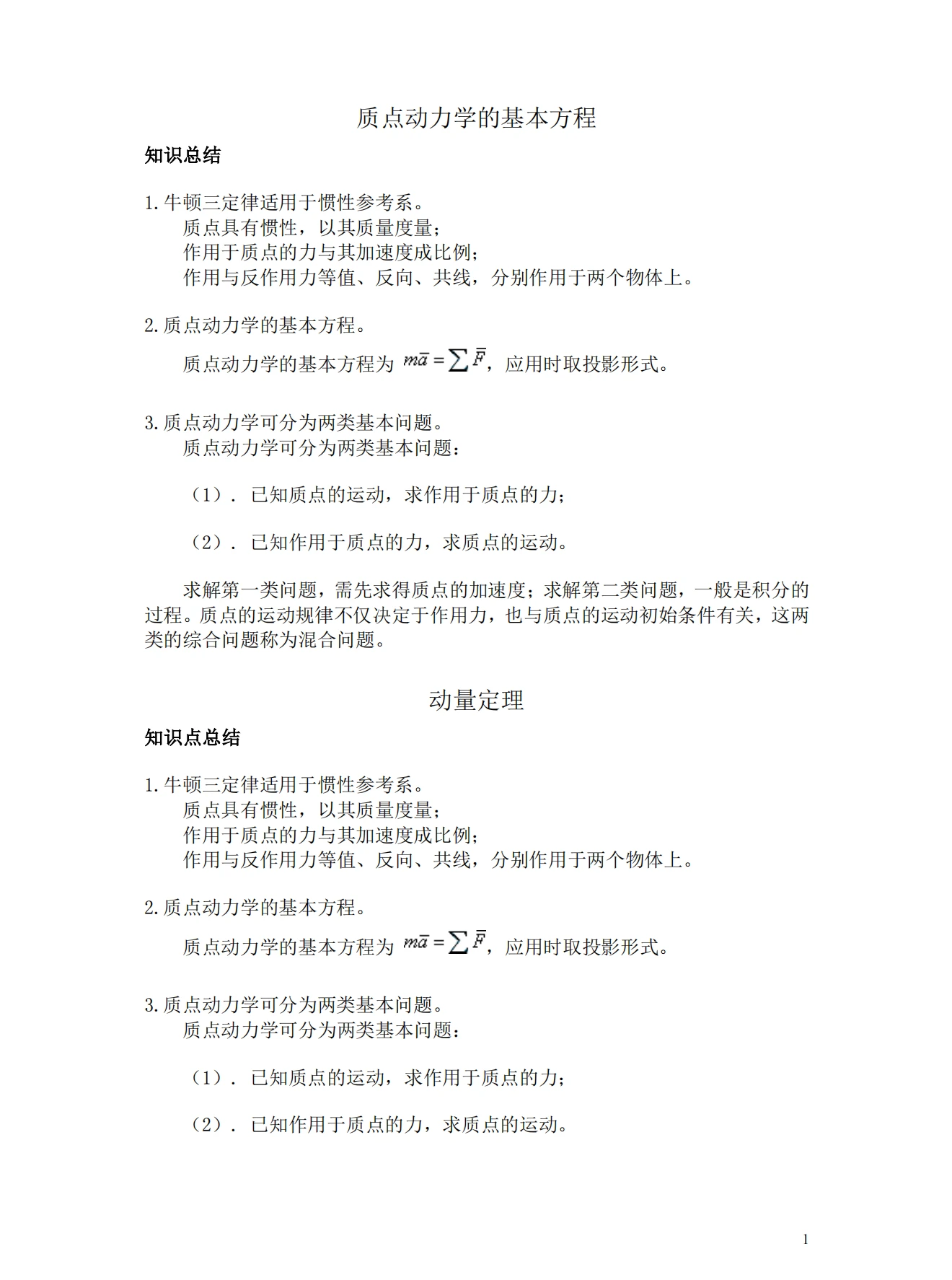本资料首先对《理论力学》的主体内容进行了深度提炼与系统梳理,包括静力学、运动学、动力学等核心章节。静力学部分涵盖了力系的简化与平衡、摩擦与约束、桁架与刚架的受力分析等;运动学部分包括点的运动、刚体的简单运动与一般运动;动力学部分则涉及质点与质点系的动力学方程、动能定理、动量定理、动量矩定理、虚位移原理等。通过简明扼要的语言和清晰的知识脉络,帮助快速回顾并掌握课程要点,形成逻辑严密的理论力学知识体系。
