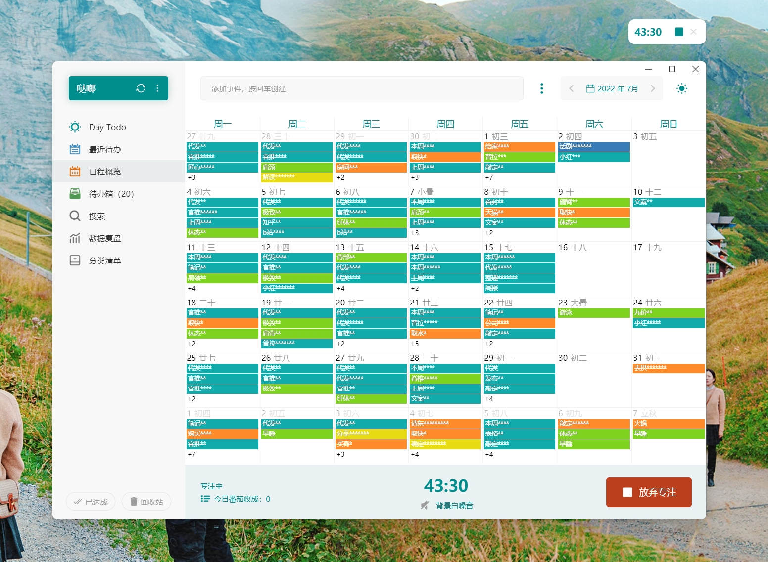 有日计划,也能查看月日历。虽然Windows自带的日历有挺好用,但可能习惯上不太符合我的操作。