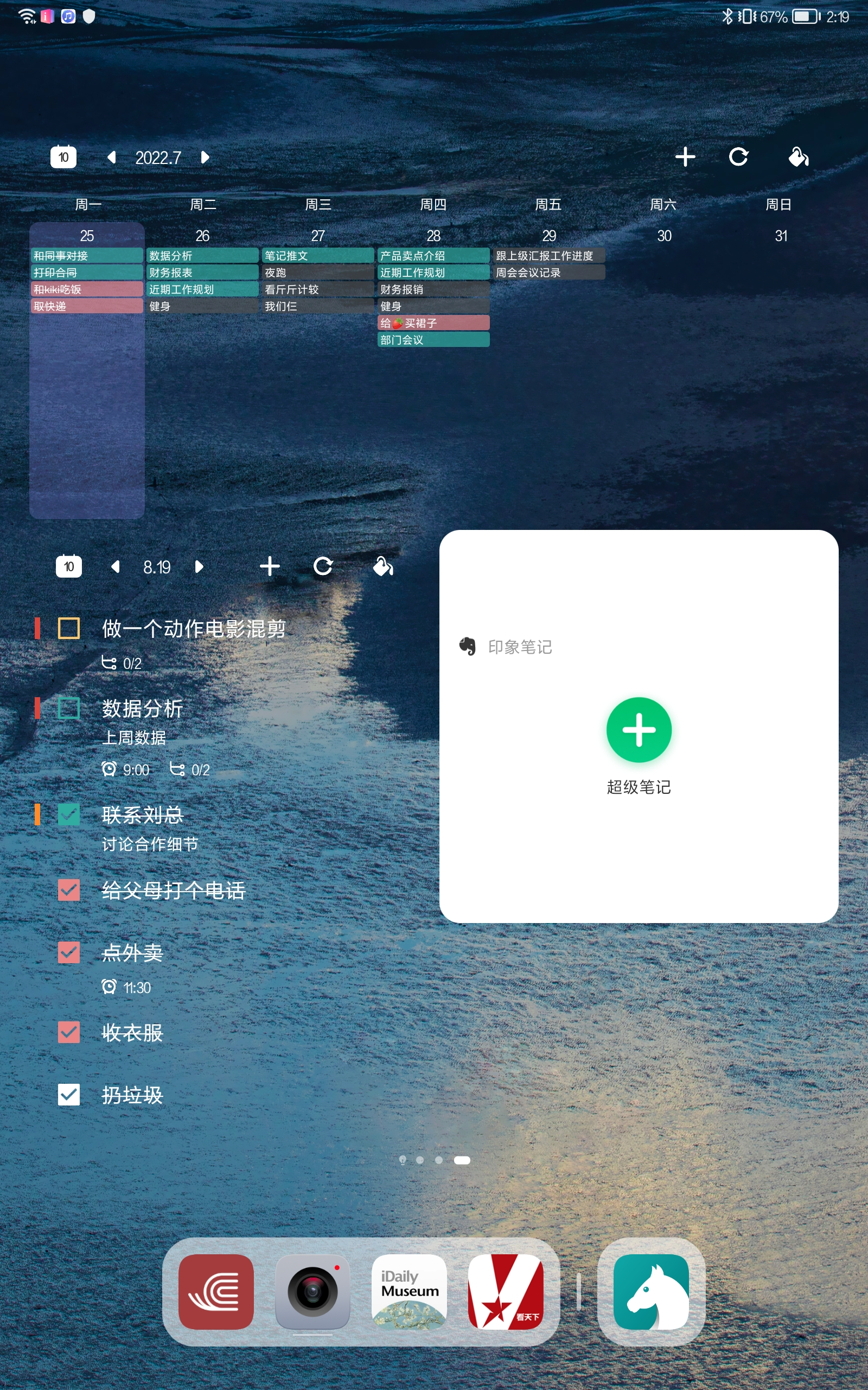 电脑端目前欠缺的桌面组件,我也会在手机和平板进行找补。尤其月日历,可调整选框为周计划,桌面组件也能各种自定义。手机端也同样,自由度很高。
