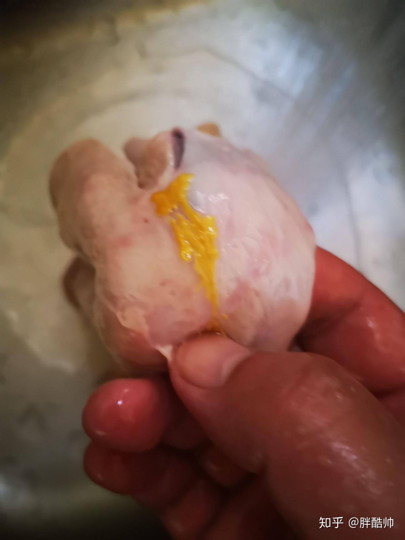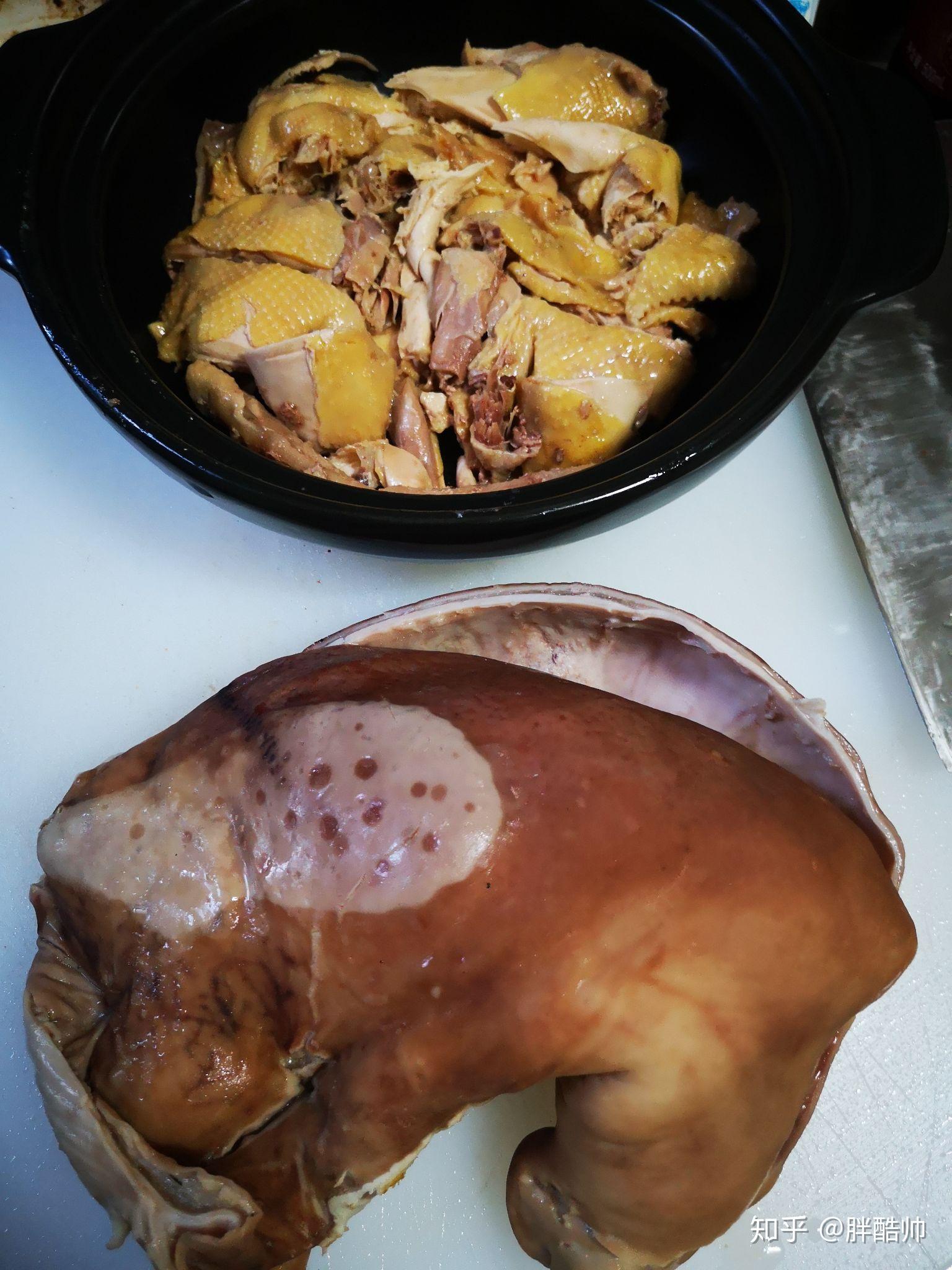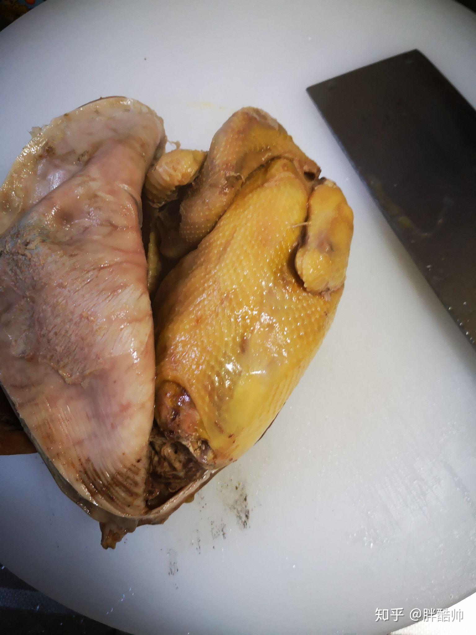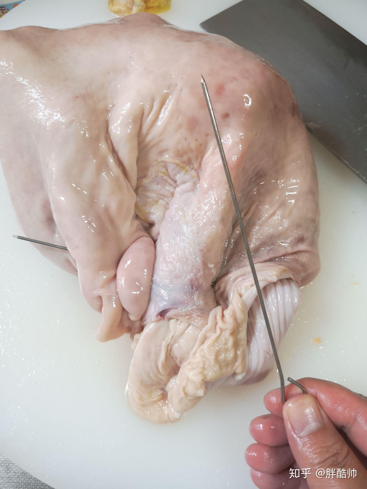破开肚子,把鸡取出来,注意观察猪肚和鸡的成色