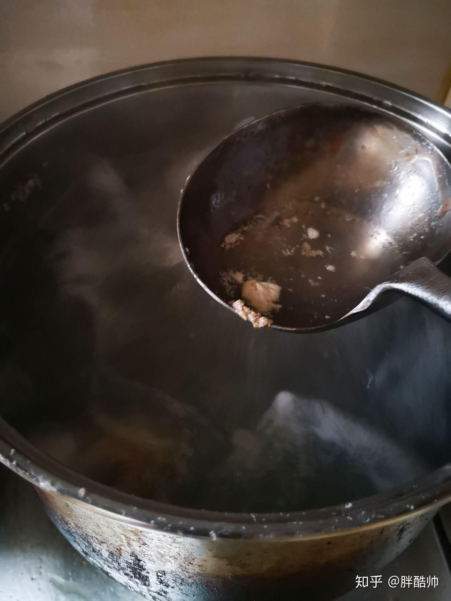 待到时候,观察锅中水位和猪肚相当,再打一次浮沫