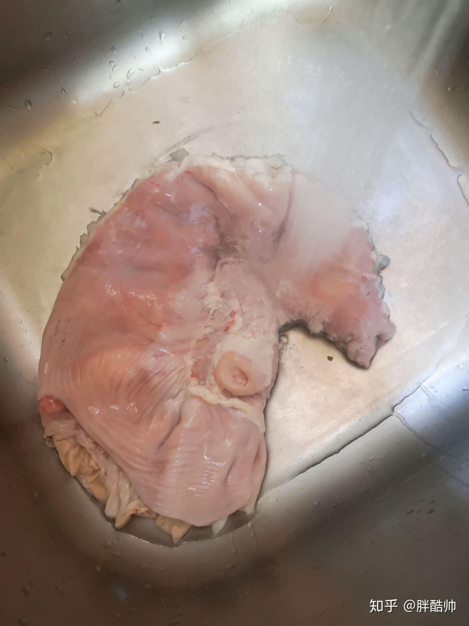 再来,摘掉杂油,猪肚不同肥肠,脂肪一点用都没有,一点点都撕掉