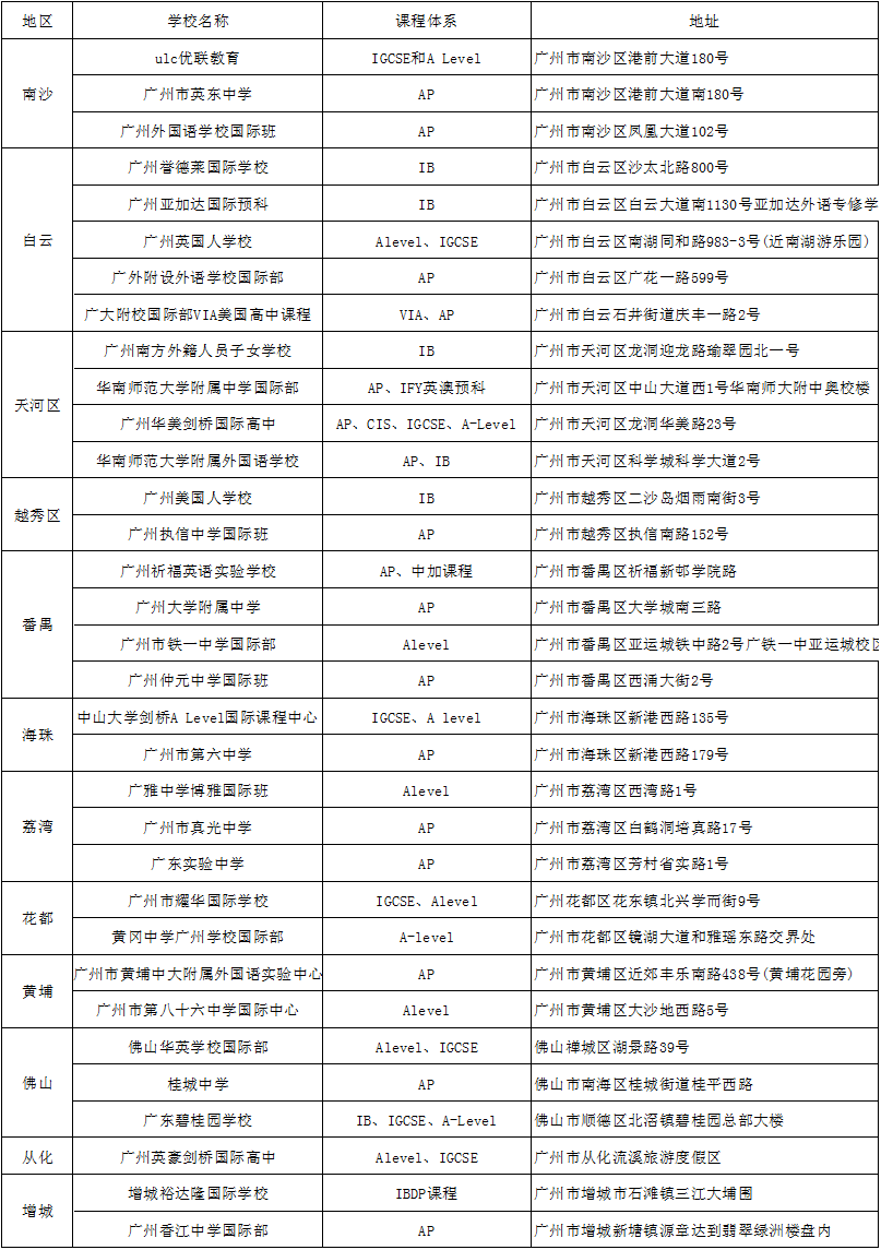 广州的国际学校大概的做了一下整理,如下: