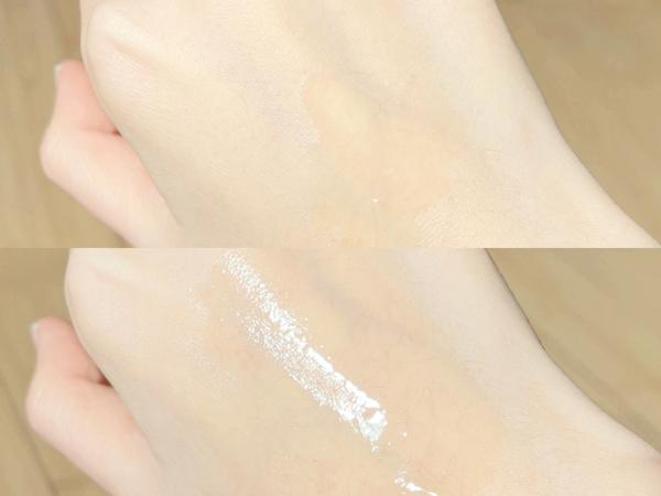 挤出来就是橙色的凝胶质地,轻轻一抹开就化成了透明的水状。渗透性真的不错,涂抹开没多久就渗透进皮肤里了,皮肤表面非常清爽,没有油腻感。