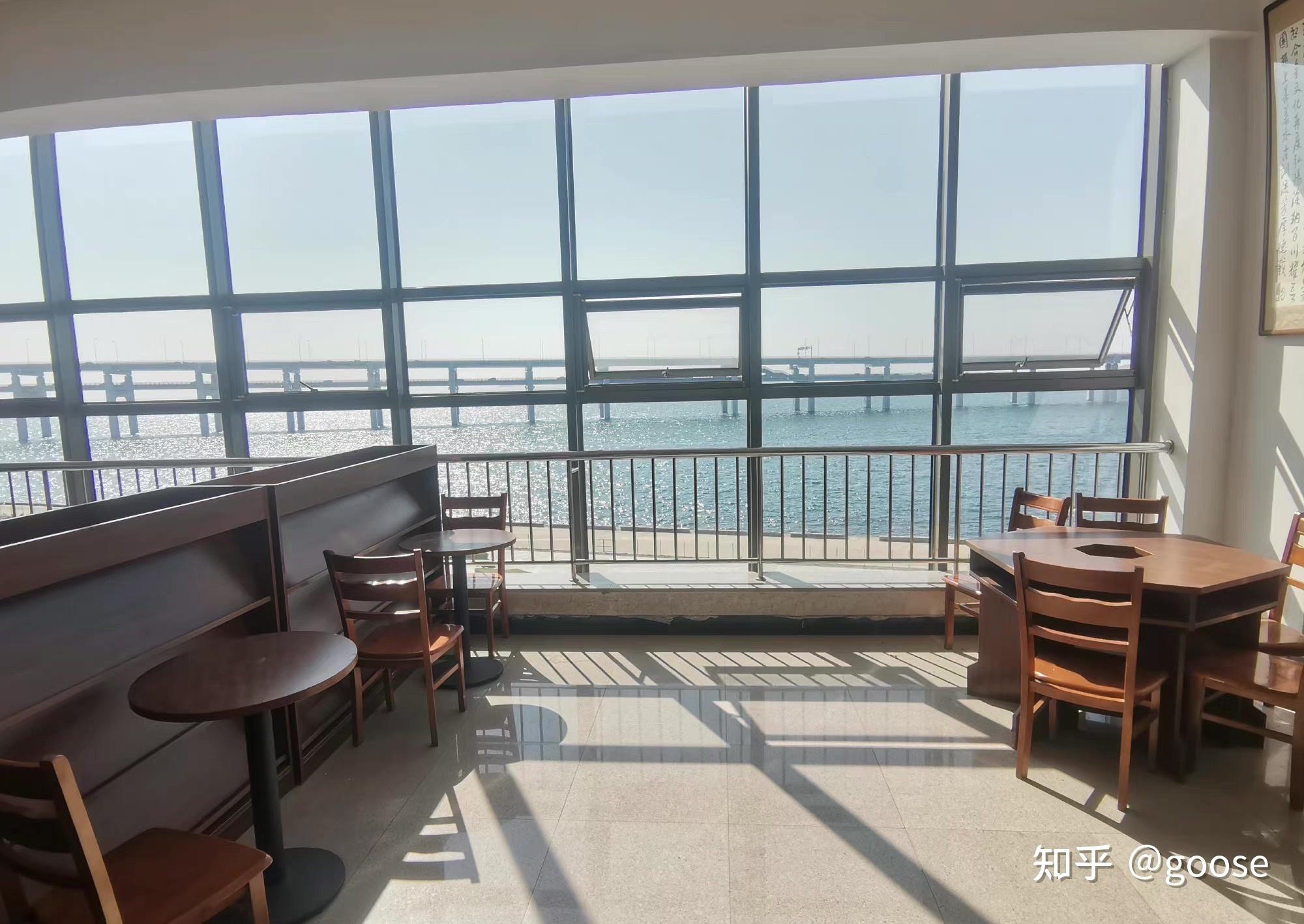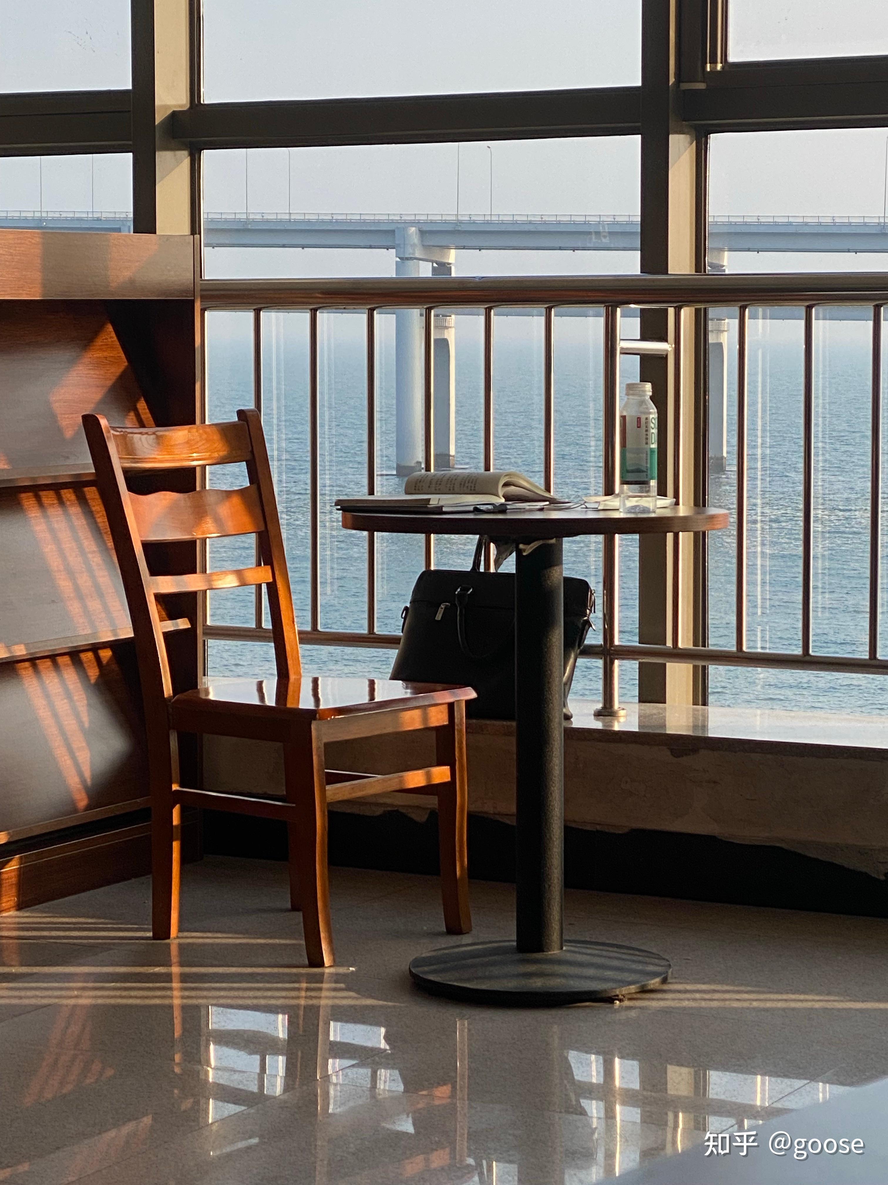在教室外的走廊有饮水机,公共卫生间的条件比校外公寓强多了,楼中间处放有沙发可供休息,在教室外空间较大的地方还放有自习桌椅,旁配咖啡机,同样为海景自习一隅,视角更佳。