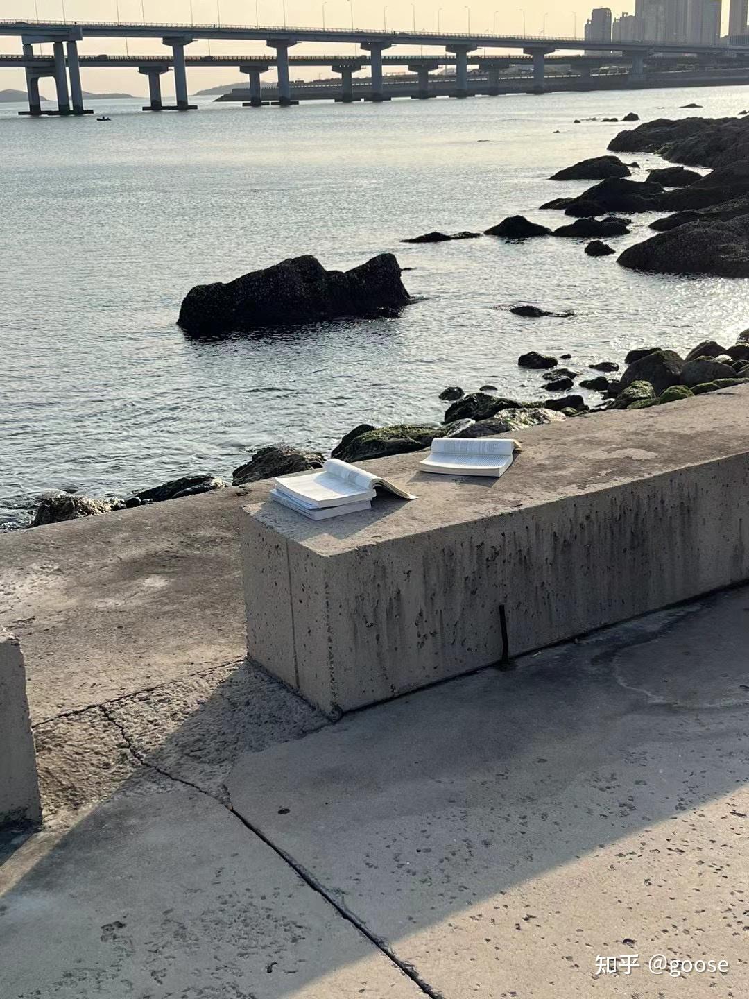 在海边有情侣靠健肩而坐,或挽臂并行,也有人在这背书,但不确定在这地是否真能背进去。↓
