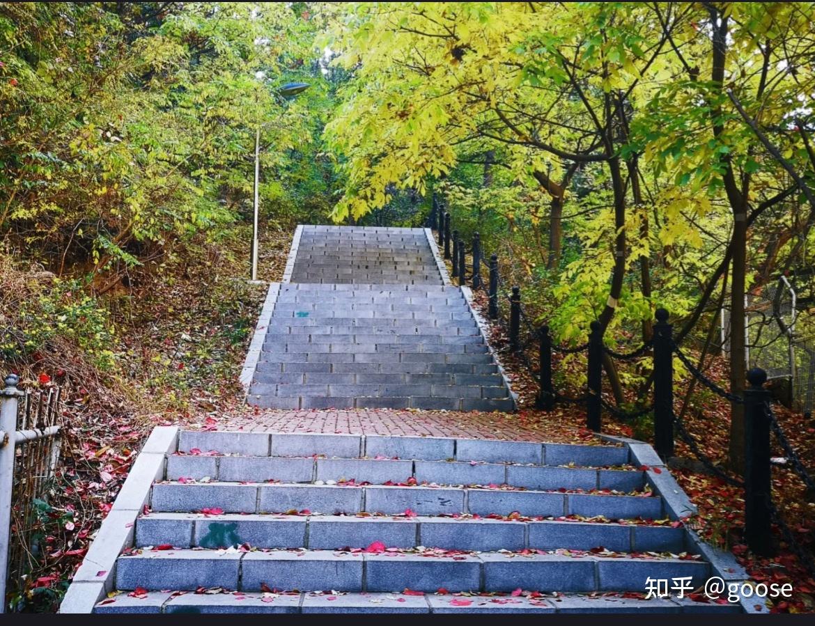 这里的山路不是攀岩那种感觉,是用石板搭成阶梯了,路过山间公园,景色不错,be like↓