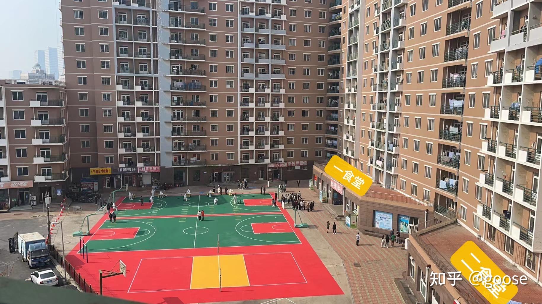 公寓区有1块篮球场地,2块羽毛球场地,还有一条比较宽的巷道会有人在那里跳绳。