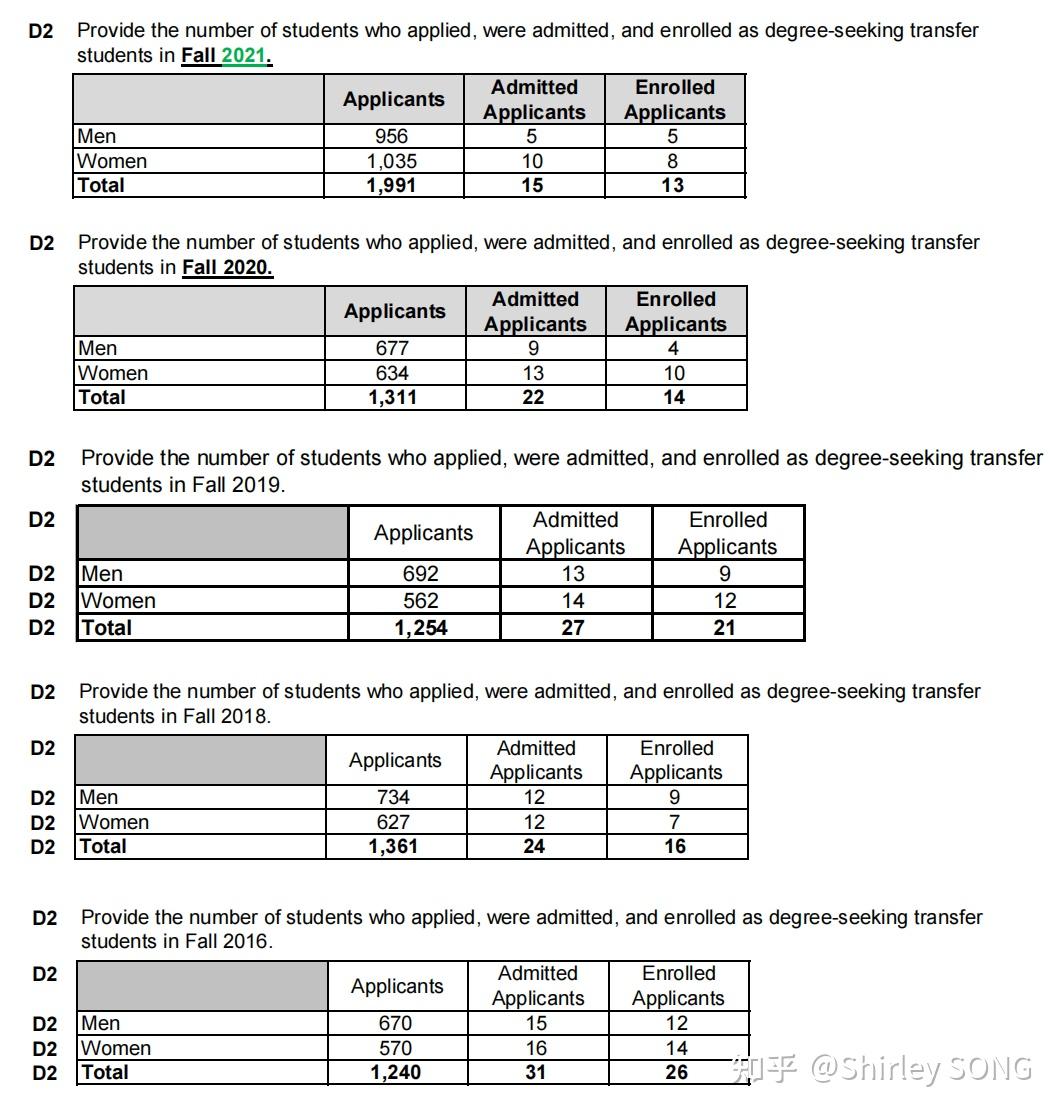 上图来源于耶鲁大学官方提供的Common Data Set表格。一般了解美本转学的学生和机构通常都不会将耶鲁大学作为转学的主要目标院校,主要原因在于该校提供的转学入读名额非常有限,基本在15人左右。且学校官网前几年明确说明转学申请主要考虑录取少量特殊身份人群,如退伍军人。
