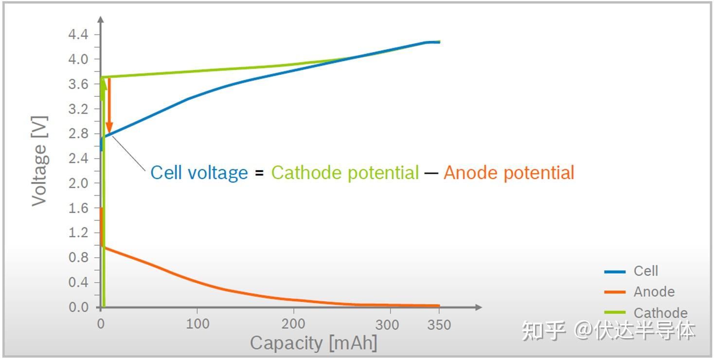 前者影响容量Q的大小,后者则影响电压U的大小。如下图3所示,正负极材料都有脱嵌锂功能,但正极材料比负极材料有更高的电极电位,这样可以与负极之间形成电势差(图4所示正负极电势差即为电池的输出端电压)。因此,理想的正极材料应该位于右上角,而理想的负极材料应位于右下角,以便形成最大的容量和电势差。