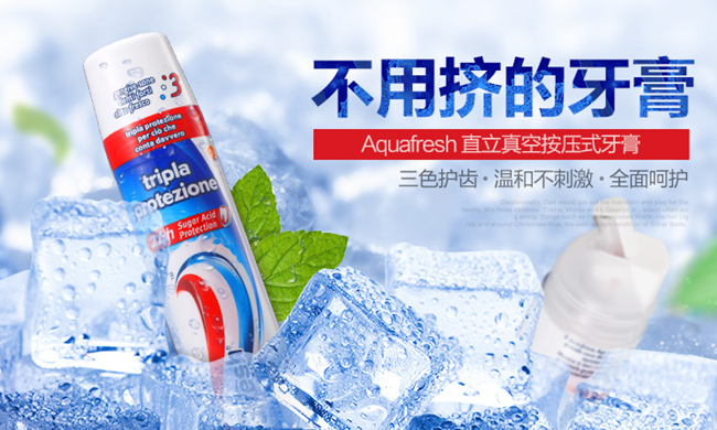Aquafresh每年帮助2000多万人告别老黄牙,销量超数千万支。Aquafresh这款直立按压牙膏挤出的膏体有三种颜色,分别发挥不同的功效。Aquafresh牙膏挤出的膏体有三种颜色,分别发挥不同的功效。红色膏体可美白牙齿,祛除牙菌斑;蓝色膏体可杀菌除臭,让口气清新;白色膏体可强健牙龈,帮助防蛀牙。同时,含有薄荷成分,加上泡沫细腻,更容易深入牙齿的每一个缝隙将牙膏的薄荷成份送到牙齿的各个角落。