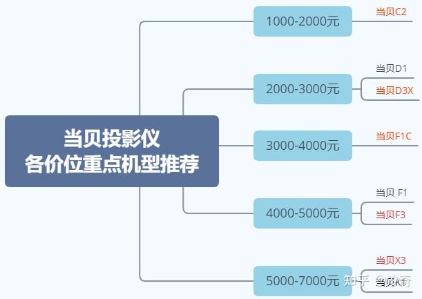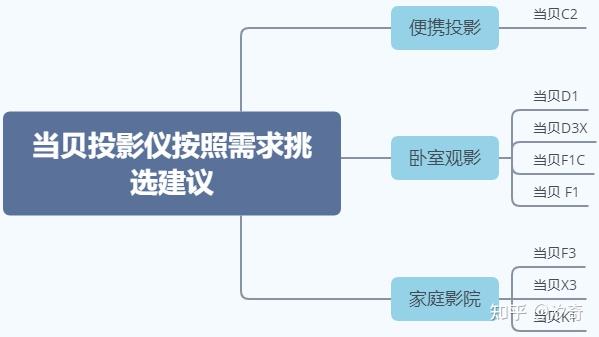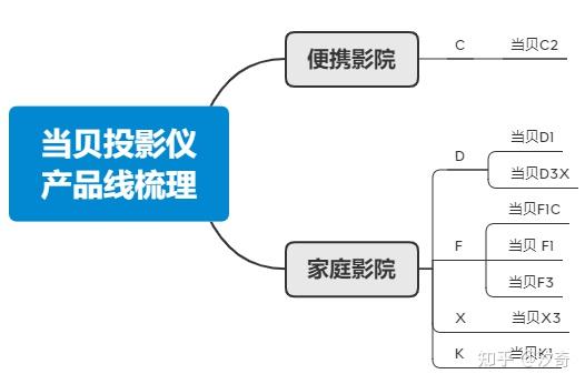 目前当贝投影旗下,主要分 家庭影院 、 便携影院 两大产品线。当贝投影仪产品线归纳之后,如下图: