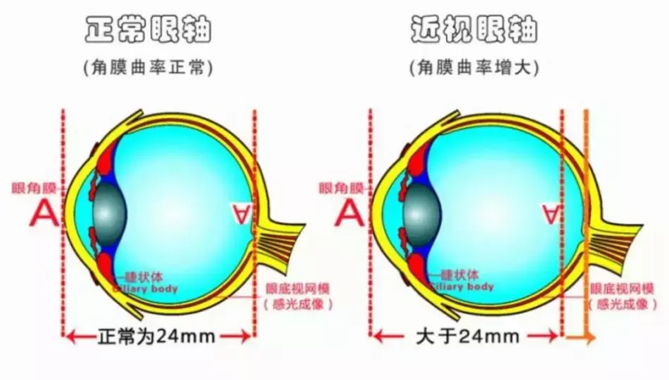 孩子眼轴增长过快,最终超过24mm,那就形成了近视,而且是不可逆的。