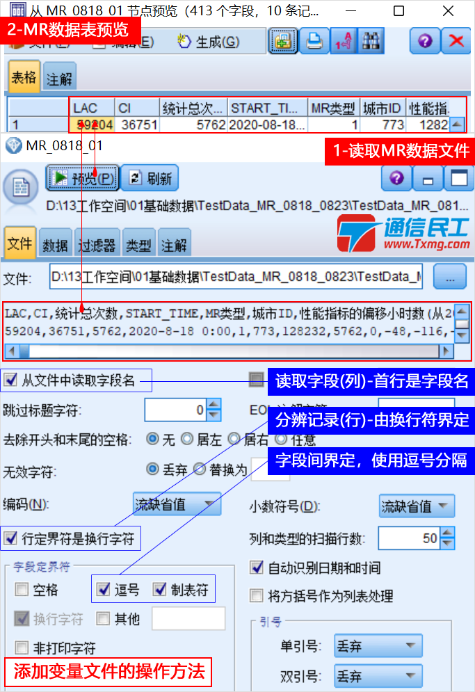 (2)变量文件: 三个常见问题,使用预览看文件内部结构;遇到乱码设置编码格式;根据行列界定符读取MR数据文件。