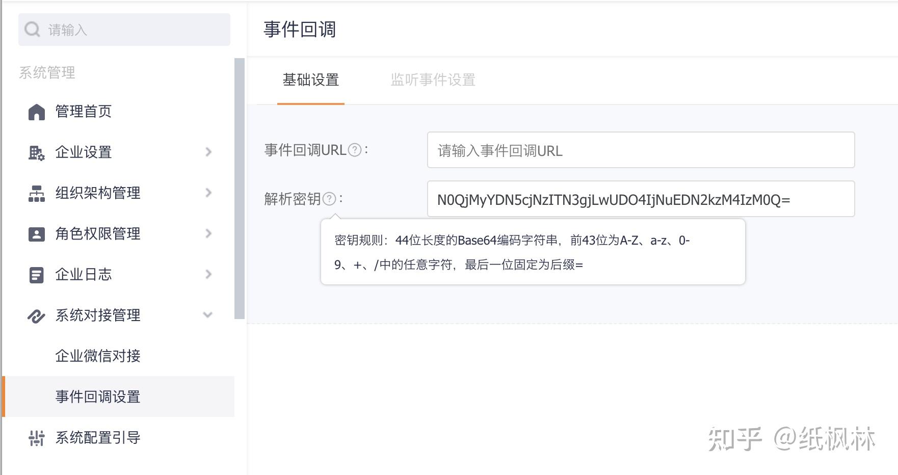 第一个大坑就在配置这个过程。配置在操作路径在:后台->系统对接管理->事件回调设置。需要填写两项内容: