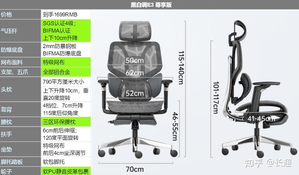 我特意去查遍了所有人体工学椅的国内外店铺,目前只有这款是全系标配了防止 脊柱侧弯 的三区环抱腰枕和SGS4级认证气压杆的椅子。