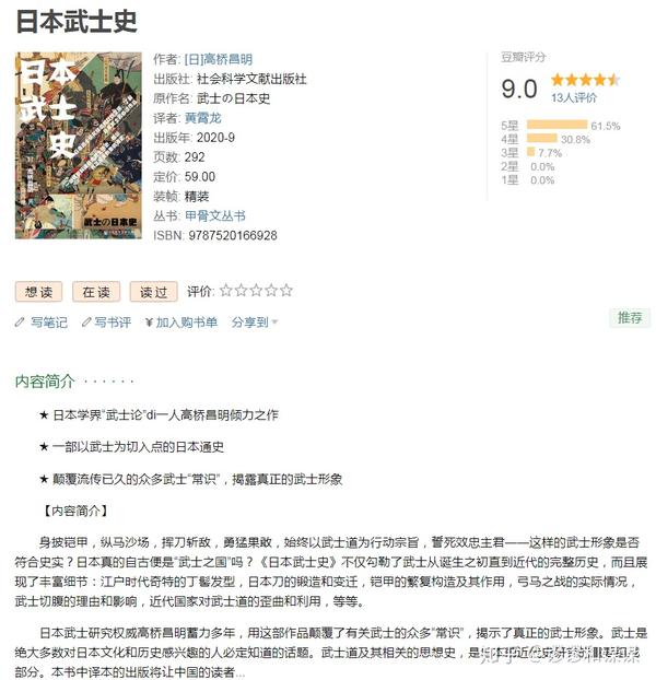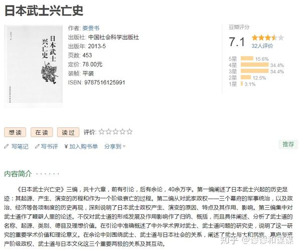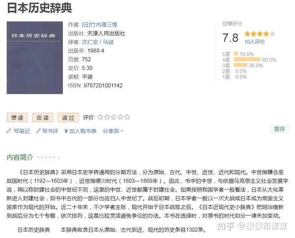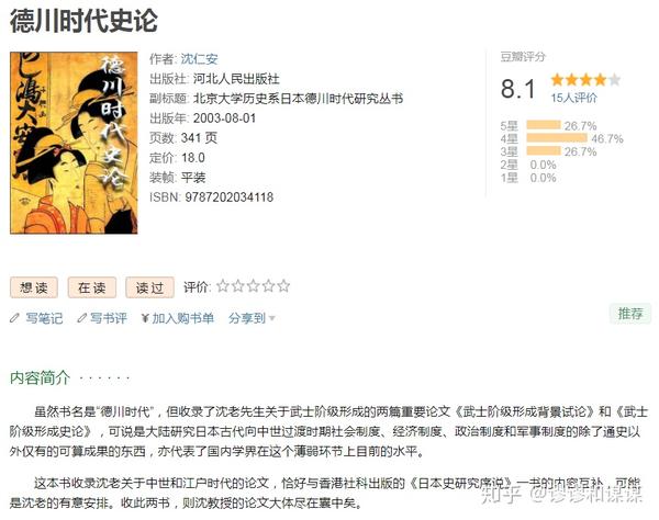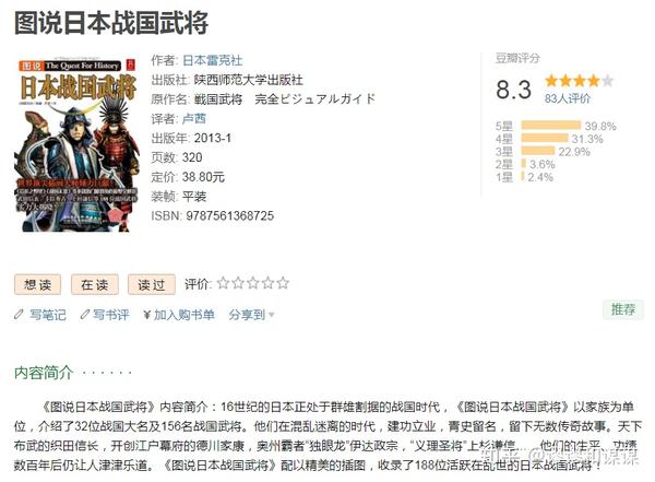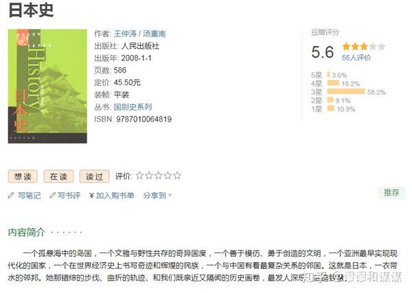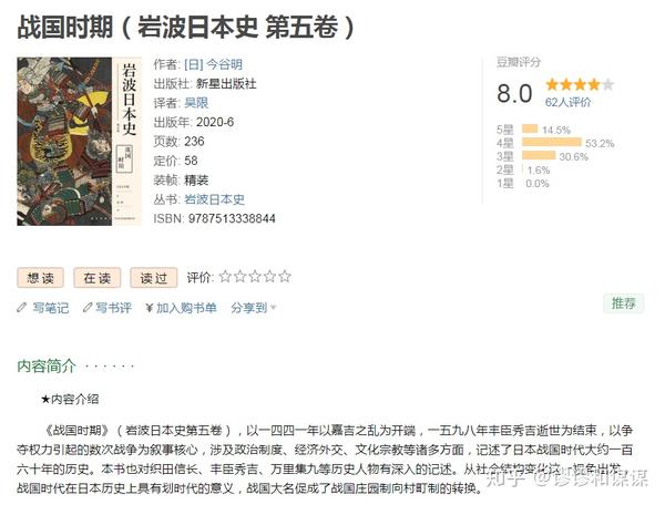 此书是南开大学历史系教授吴廷璆先生的作品,虽然对今天而言有些老旧,论及日本战国的篇幅也特别少,但却是中国在日本历史研究领域的里程碑,受到许多专业人士的推荐。