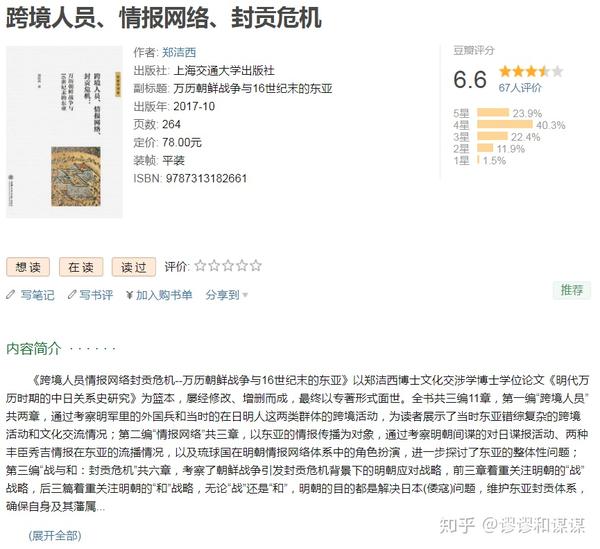 本书由老等 @等人大 推荐。据说作者是国内研究万历朝鲜战争的资深人士秋风萧落的作品。购买链接很另类,只在摩点发售: