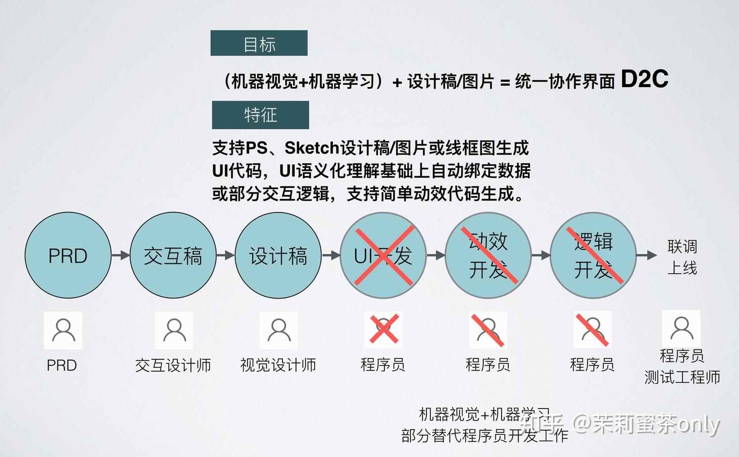 目标很简单:用机器学习和插件辅助给设计师和前端工程师提供统一的协作界面,自动完成设计稿到代码的过程。除了能够用设计稿直接生成代码的方式减少UI开发工作量,未来可以对数据绑定、简单交互逻辑也通过语义化分析和自然语言理解的机器学习能力进行支撑。