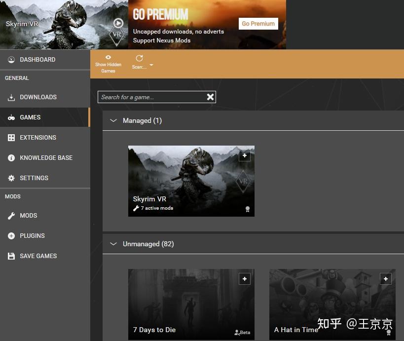 这个软件是著名mod网站nexusmods的官方软件,方便大家安装和管理mod,基本做到了傻瓜式的操作,使用异常简单,网上有文字版和视频版的教程,很容易搜索到,我就不多说了。在游戏界面看看软件是否自动找到了游戏,没有就需要自己建立。