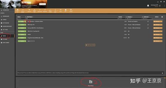 安装mod的方法就是在mod界面(红圈1)里直接把下载好的mod压缩包拖到安装位置(红圈2),等待自动安装完以后一定要记得启用(红圈3小箭头下拉选择Enabled),如图显示绿色就OK了。