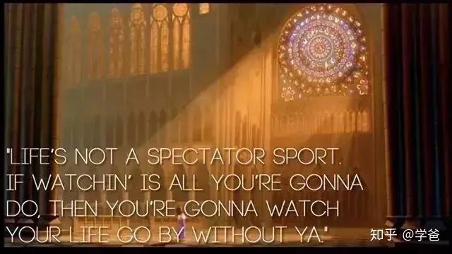 “生活不是用来旁观的。如果你要做的仅仅是旁观而已,那么你会眼睁睁地看着生活抛下你,流逝而去。” --《钟楼怪人》The Hunchback of Notre Dame