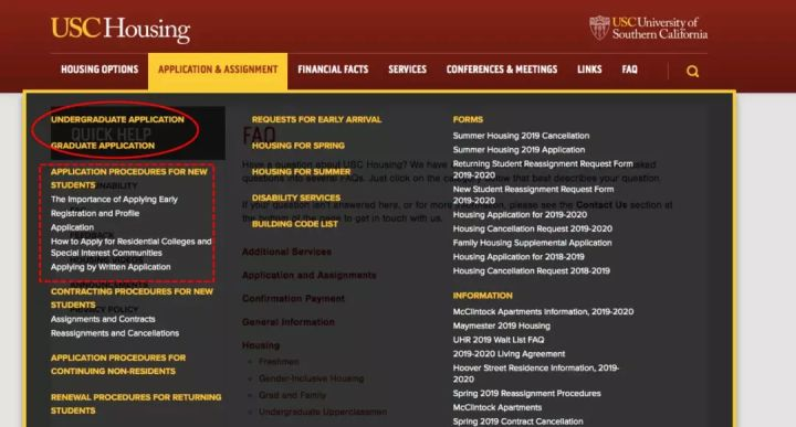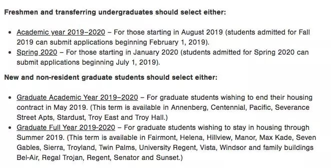 本科生和研究生申请USC Housing住宿的要求和手续不一样,能够选择居住的地方也不一样。