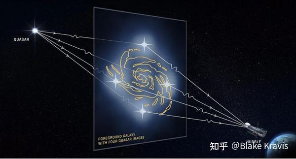 人类的哈勃太空望远镜可以看到宇宙中到处都是引力透镜,在宇宙空间这张大幕布中,恒星和星系由于它们的庞大的质量而让空间幕布产生巨大的扭曲,当光通过该场传播时,光路在到达哈勃望远镜之前会发生弯曲。这会在恒星和星系的图像中产生两种主要类型的失真:根据广义相对论的预测而命名的爱因斯坦环和爱因斯坦十字架;分别是黑洞和星体的光,在经过宇宙空间中已经被其他星系扭曲的背景空间,产生了透镜效应,导致观测者的视觉发生变化。