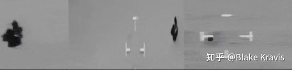 如果将图像放大,可以看到更清晰影像,显示为多个相互连接在一起的模糊的不明物体“影像团”。而且不明现象UAP保持其能量并以大约 100 英里/小时的速度移动,仅比它在空中的平均速度低 20 英里/小时,这表明水不会对其构成明显的阻力以阻碍其的运动。这对于任何空气或流体接触的飞行器来说都是不可能的。