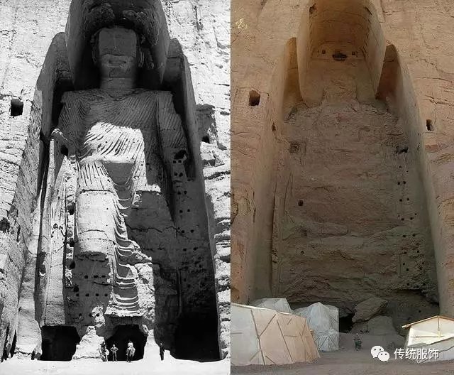 △ 举世闻名的巴米扬大佛被毁前后对比图