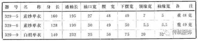 以下数据来自于《长沙马王堆一号汉墓 出土纺织品的研究》一书,测算是其中一件编号329-6的素纱襌衣。