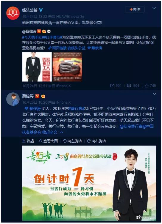 出道十多年,蔡俊涛想必深谙娱乐圈的法则,但他却几乎和炒作绝缘,翻看他的微博就知道,他的日常基本上除了工作就是公益。