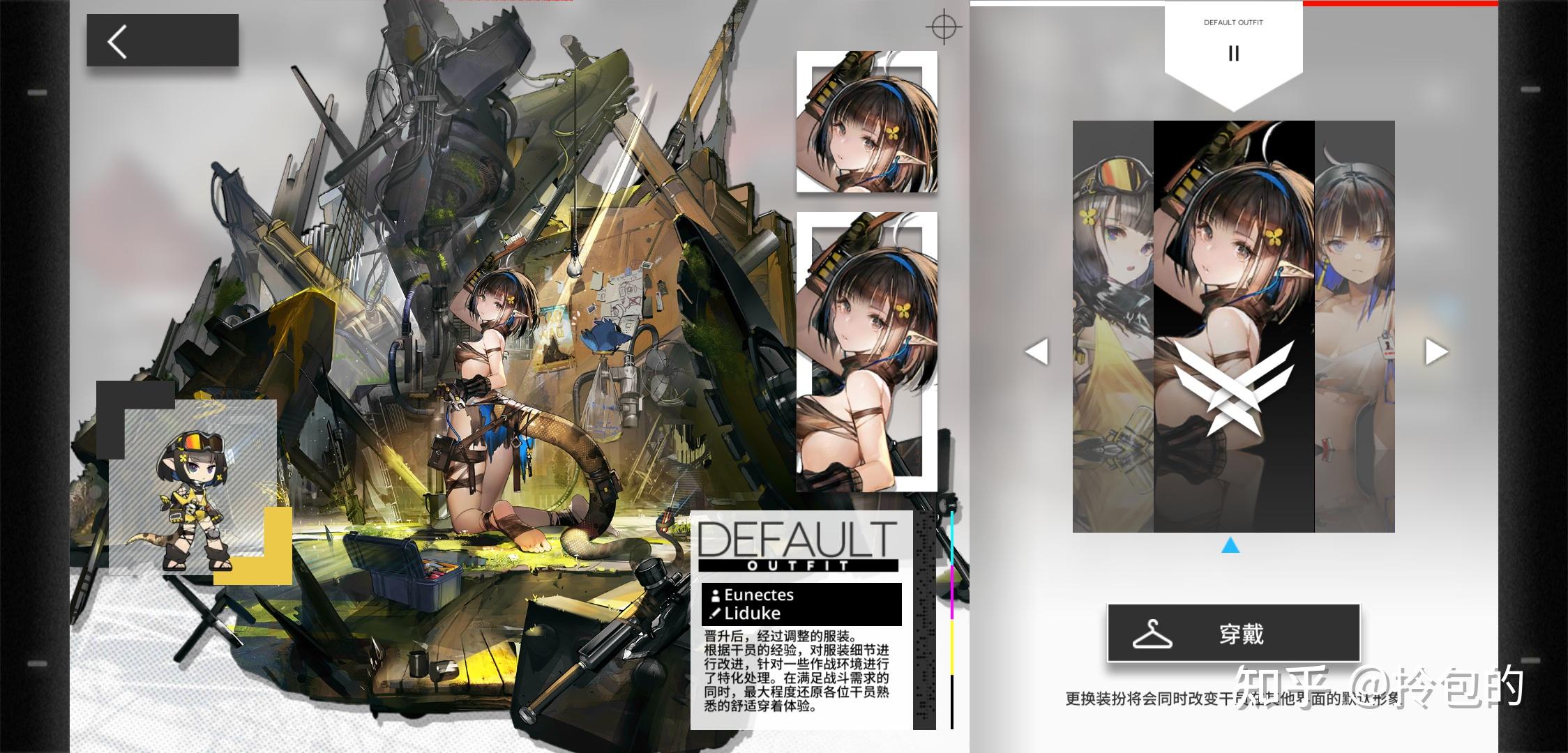 关卡中的小人因为风格你是很难看到细节的,加上置于地图之中只占很小一部分,顶多也就是分辨下谁是谁。所以所有的担子就落到了干员立绘上面,若说玩家看一个干员,八成时间都是在看立绘,所以方舟的立绘与其他游戏略有不同(尤其精二),它不仅要展示清楚角色,还要一并展示角色的风格,战斗方式,甚至氛围。