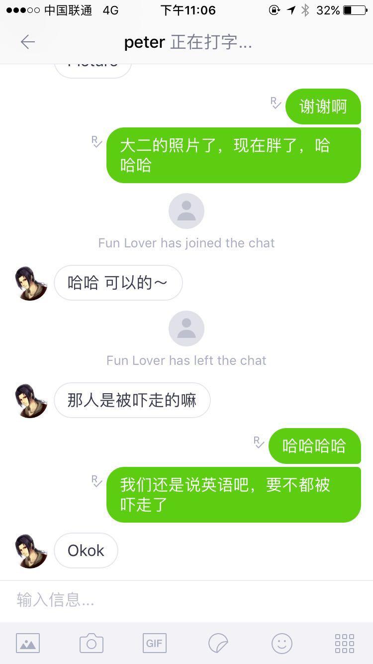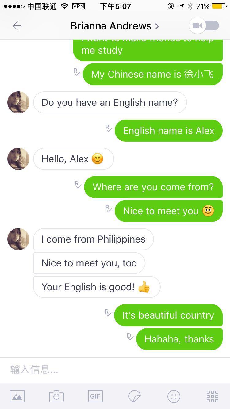 我用了两个多月,竟然在上面遇到我楼上公司的俄国妹子,(认真脸)妹子长得真得漂亮,通过语音翻译,沟通下来发现外国人都很单纯,大多数对中国感兴趣,而且还见面一起喝咖啡,学会了几句俄语,现在已经算好朋友啦! Cпасибо!(死吧撕八)谢谢的意思。。。哈哈