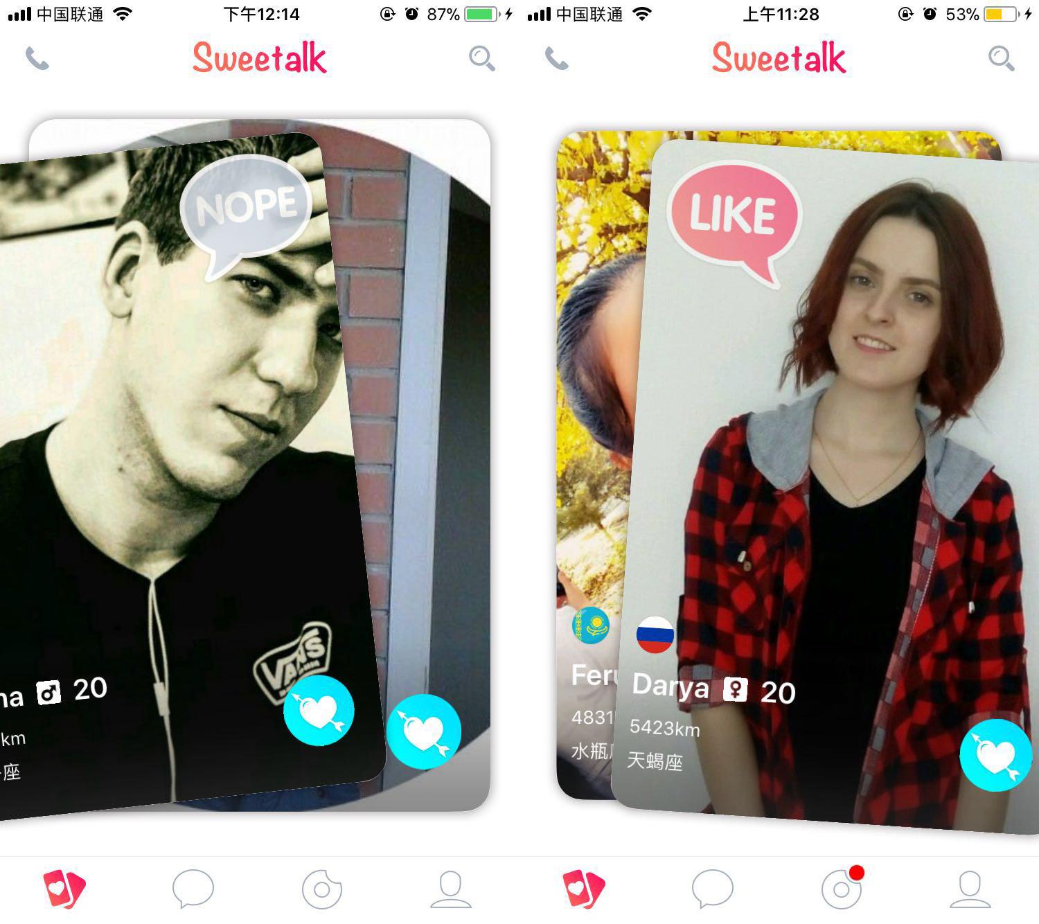 只支持Facebook登录,可以绑定Instagram,左右滑动,配对交友。