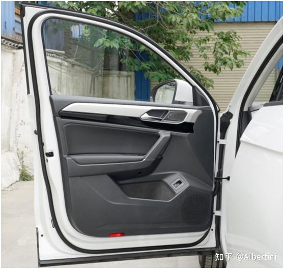 仪表板和门板都是包覆的,门板扶手附近甚至用了一大块真皮,这在20万出头的大众车里可不多见。