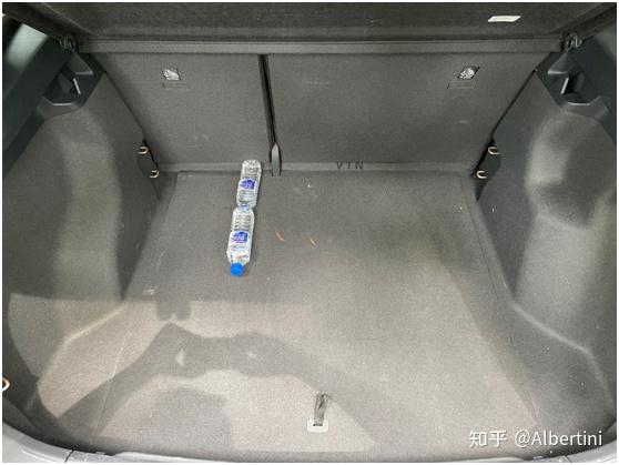 后备箱容积很大,两瓶600毫升矿泉水的长度还不到深度的一半,足以存放相当多的行李。