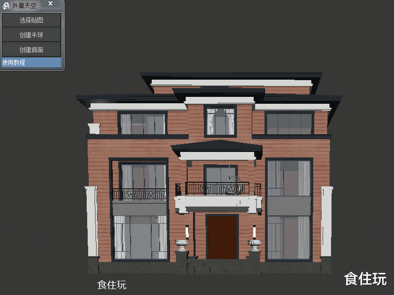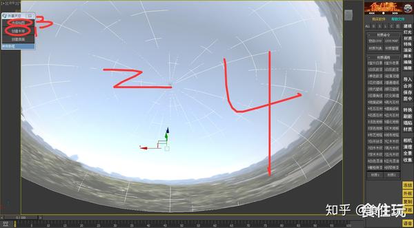 步骤8、还可以直接跳过步骤3到步骤8的操作,直接点击“创建半球”按钮,场景中就会创建出一个很大的室外半球。