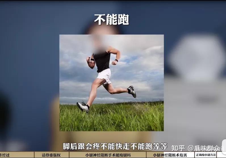 这是妥妥的侵权和虚假宣传阿。小腿神经阻断术是韩小四很不推荐的手术,因为小腿神经阻断术不能起到瘦腿作用,而且有可能造成不可逆的伤害。小腿神经阻断术的人,以后不能快走不能跑,甚至还会关节痛。