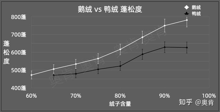 羽绒服的品质,一半取决于填充的羽绒。和鸭子相比,鹅的饲养周期长,羽绒成熟度好,球状绒子含量高,比鸭绒平均高出100蓬松度,保暖效果更好。